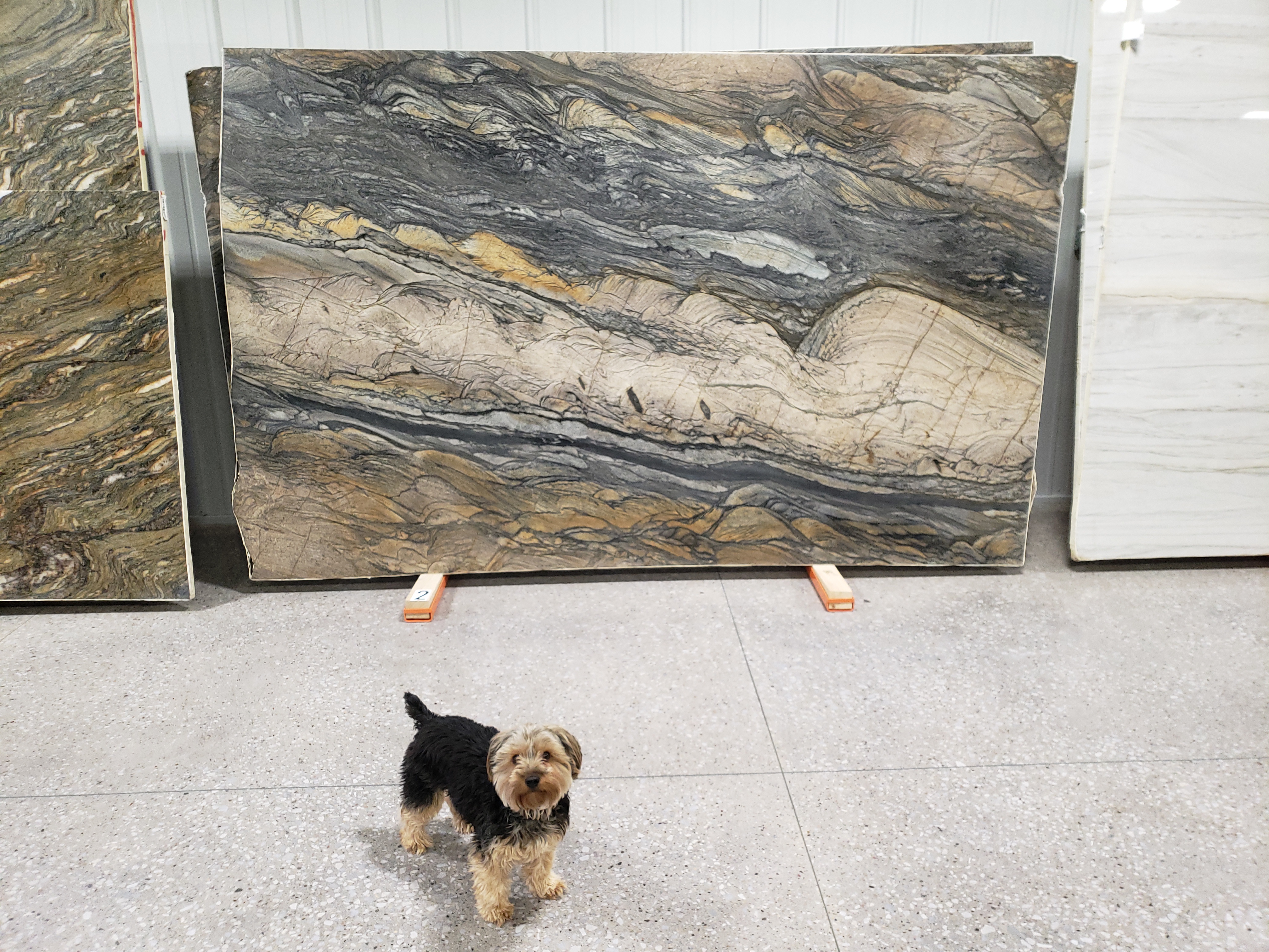 Chewy loves the natural character in this slab of Sandaluz Quartzite. It’s really unique and Chewy’s personality is full of character just like this slab.