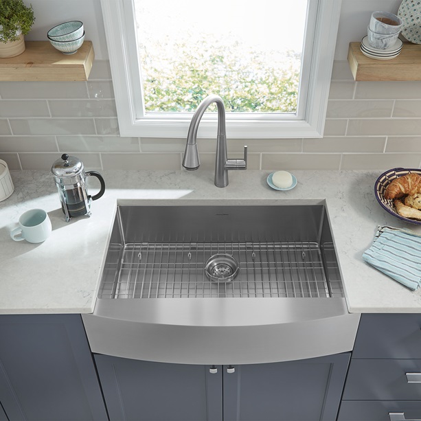 One of the newest and most exciting things coming to our indoor showroom is our display with our apron sinks. Apron sinks help complete that modern farmhouse look that is hot and on trend right now.
